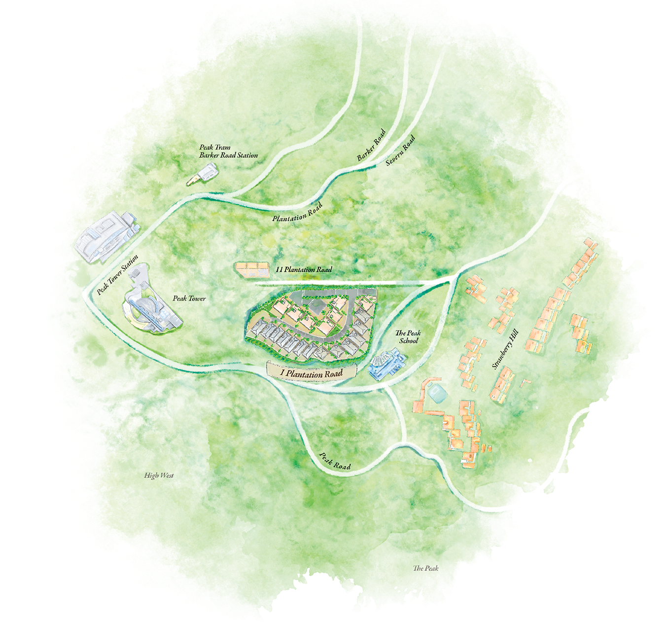 District: The Peak | Name of the street at which the Phase is situated and the street number of the Phase allocated by the Commissioner of Rating and Valuation: 1 Plantation Road | The address of the website designated by the vendor for the Phase for the purposes of Part 2 of the Residential Properties (First-hand Sales) Ordinance is: www.1plantationroad.com.hk | The photographs, images, drawings or sketches shown in this advertisement/promotional material represent an artist's impression of the development concerned only. They are not drawn to scale and/or may have been edited and processed with computerized imaging techniques. Prospective purchasers should make reference to the sales brochure for details of the development. The vendor also advises prospective purchasers to conduct an on-site visit for a better understanding of the development site, its surrounding environment and the public facilities nearby.